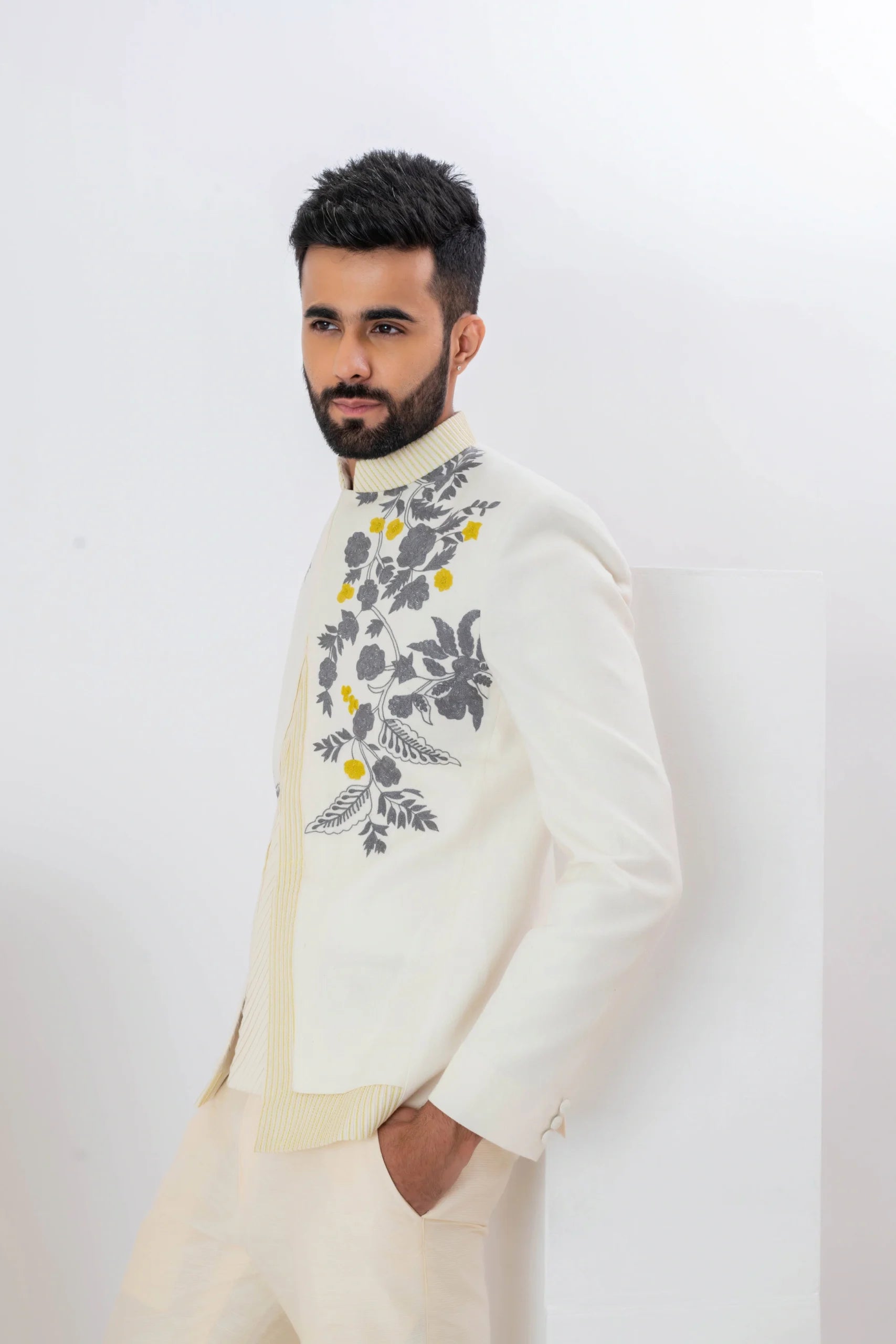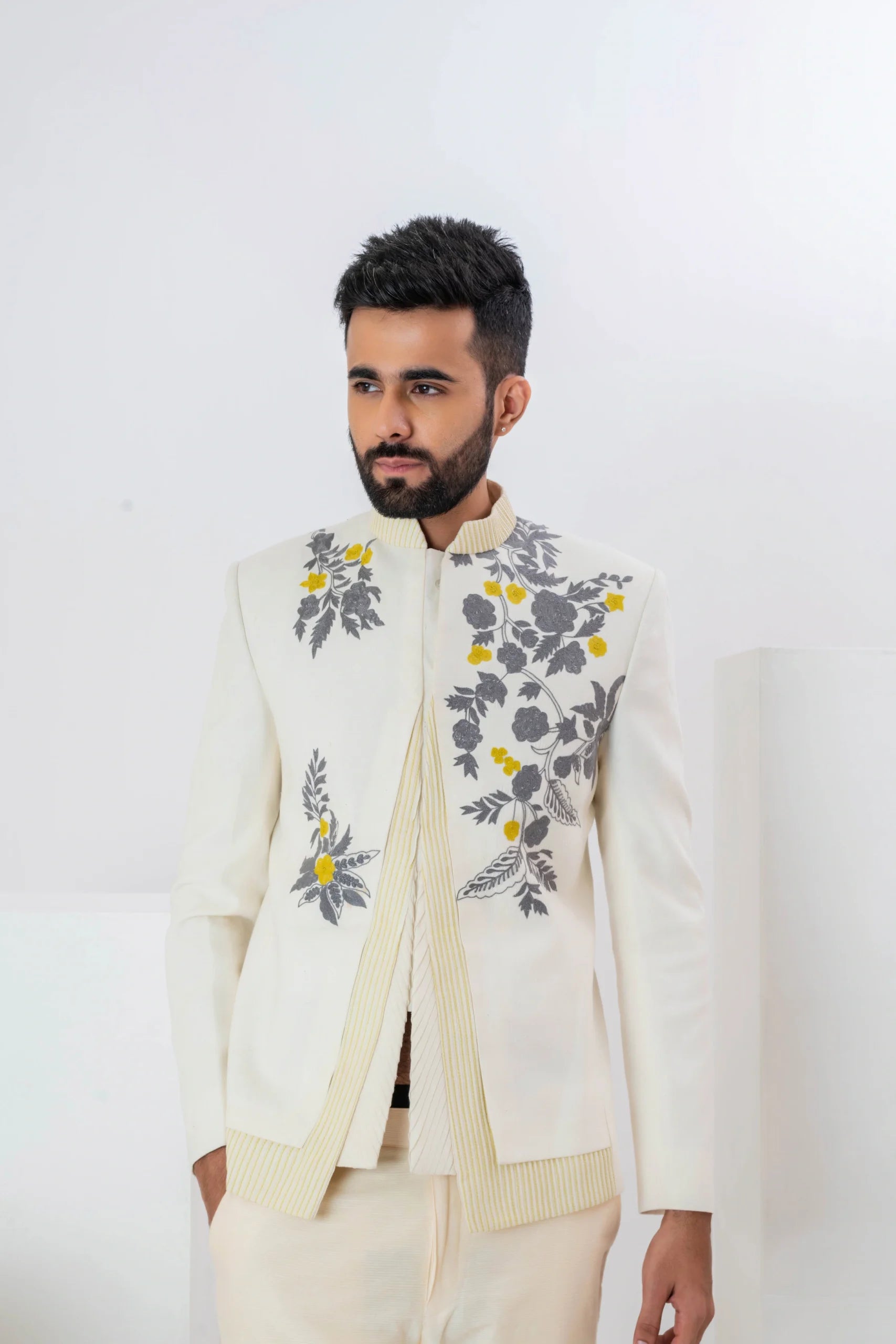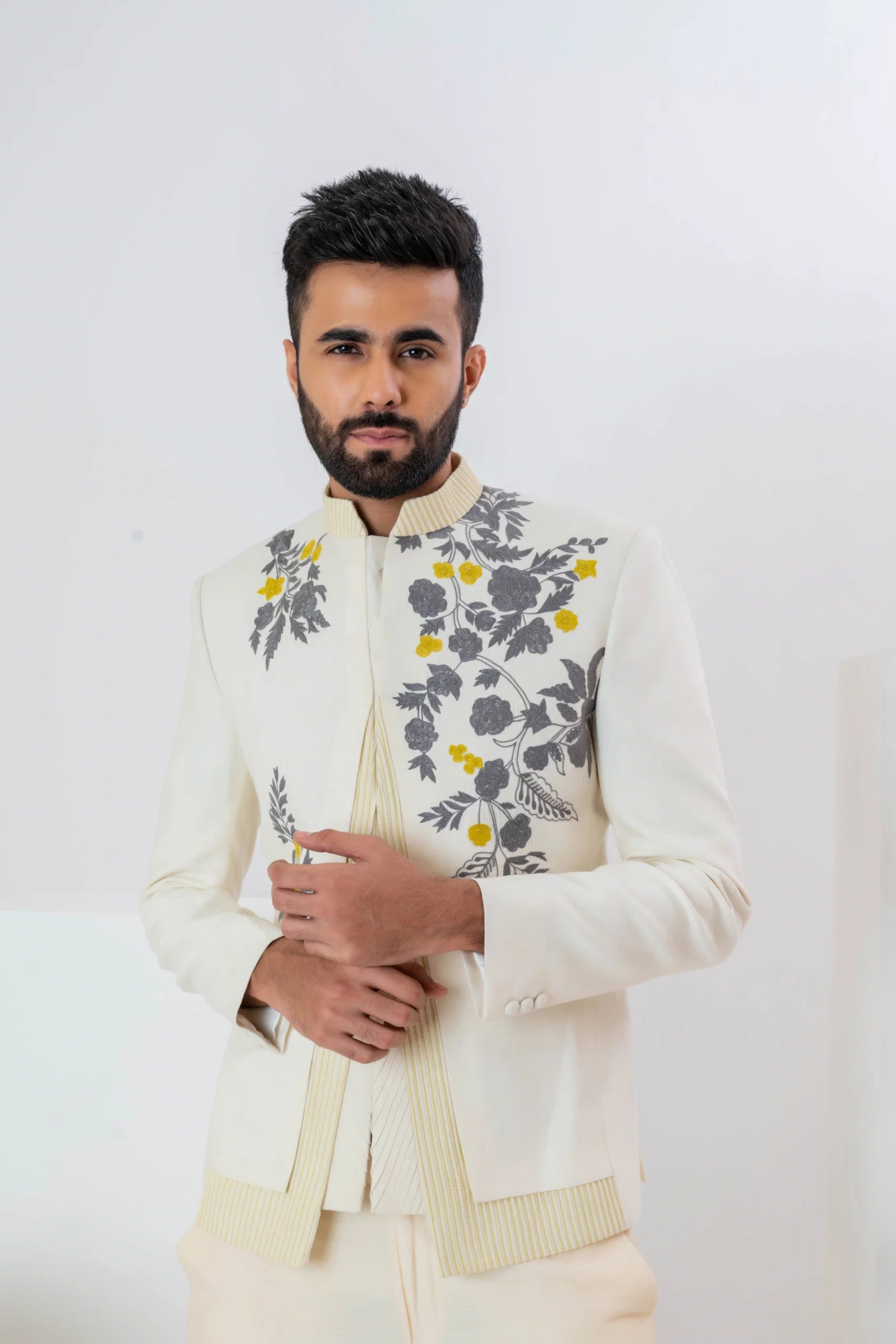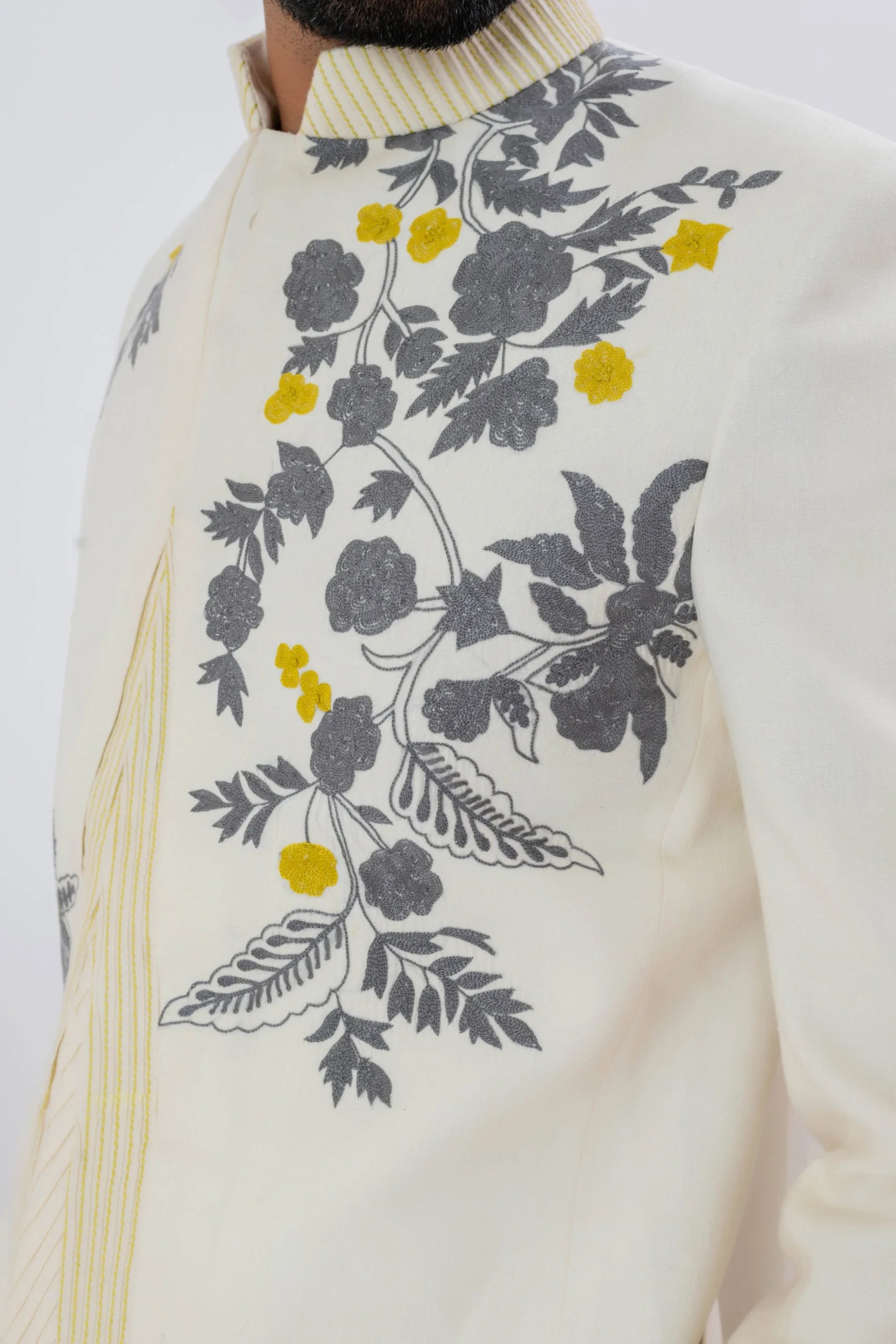 Product Description:Featuring an ivory coat in matka silk base with thread hand embroidery. Perfect wear for festive occasions.