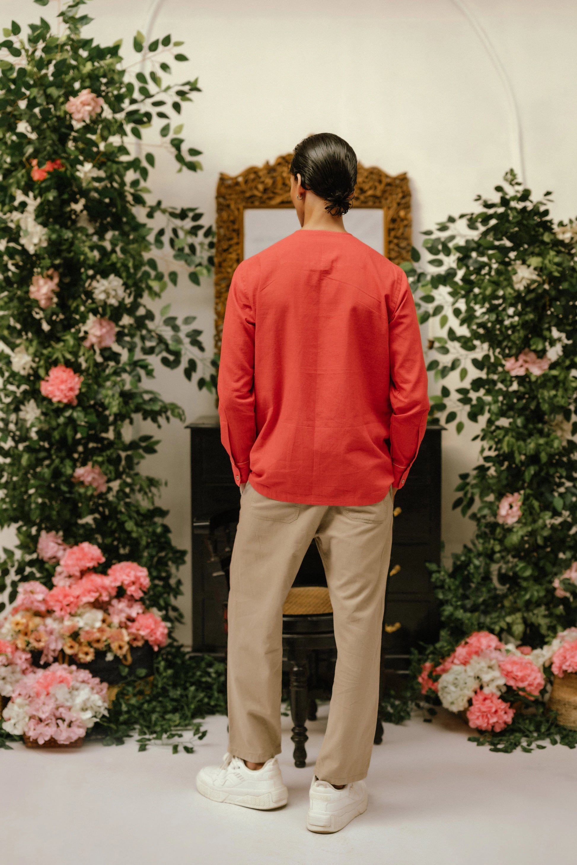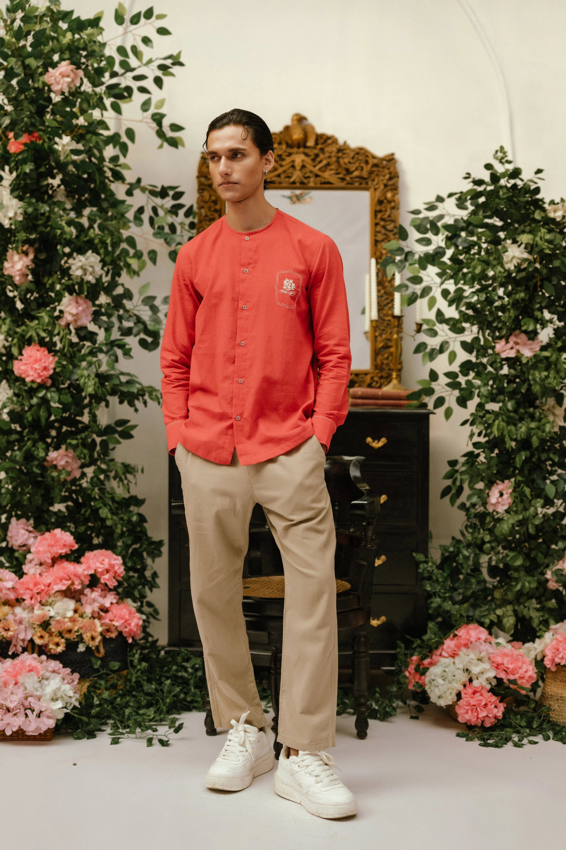 Product Description: Round neck shirt with dainty hand embroidered details.