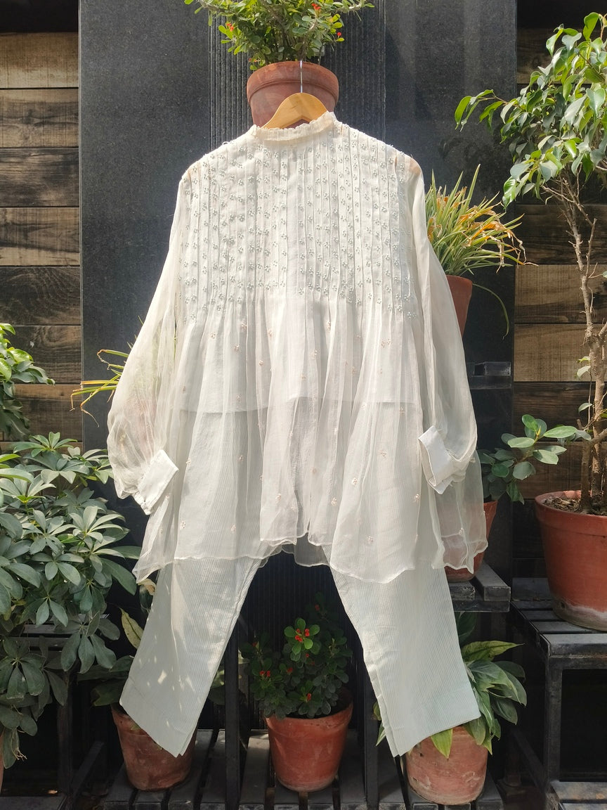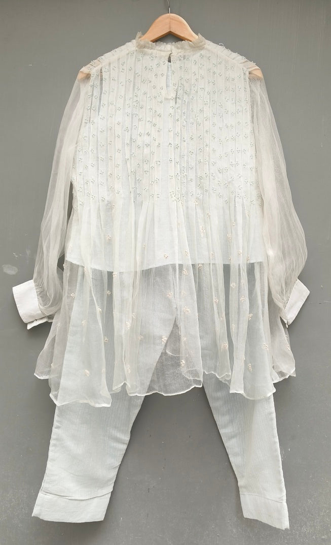 Fabric: Handwoven Organza Top with Stripe Cotton Trouser