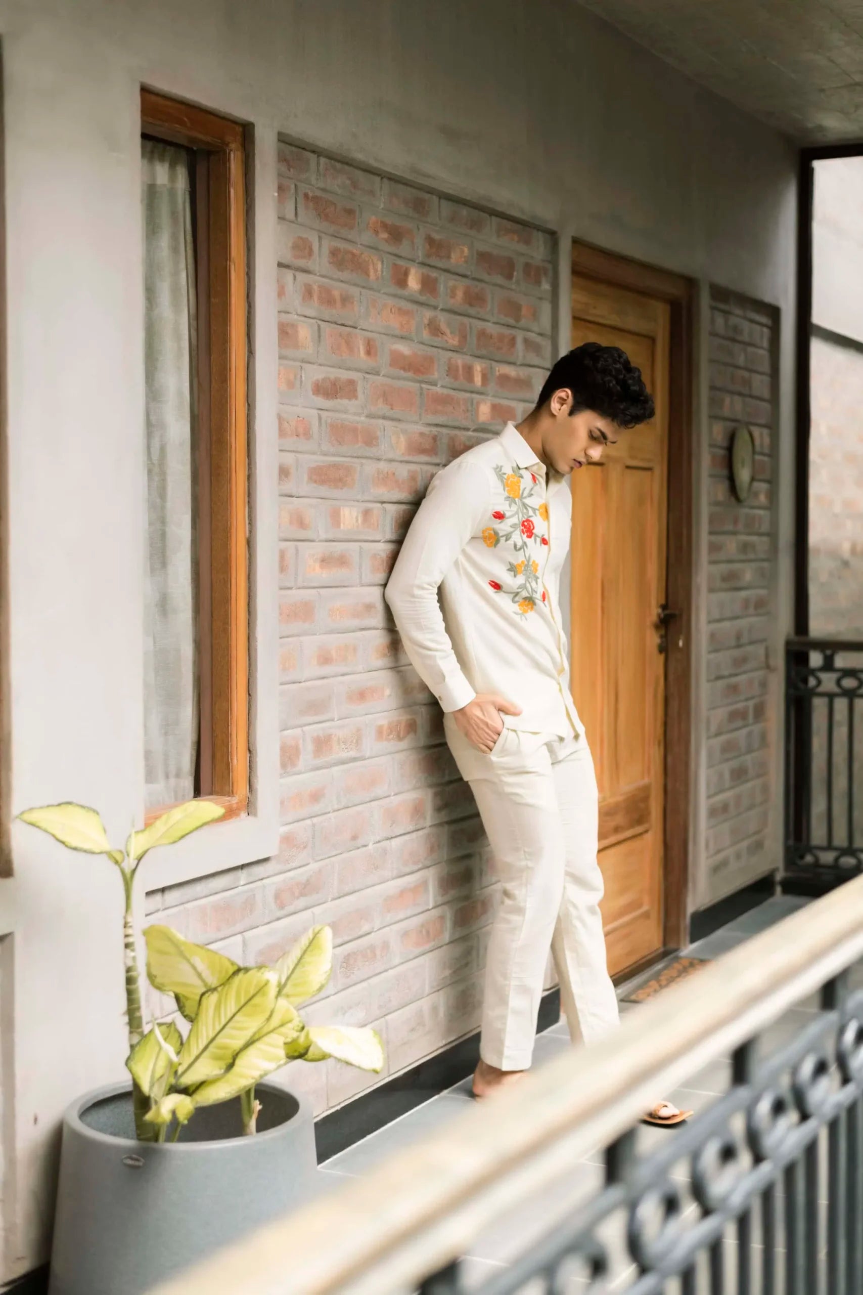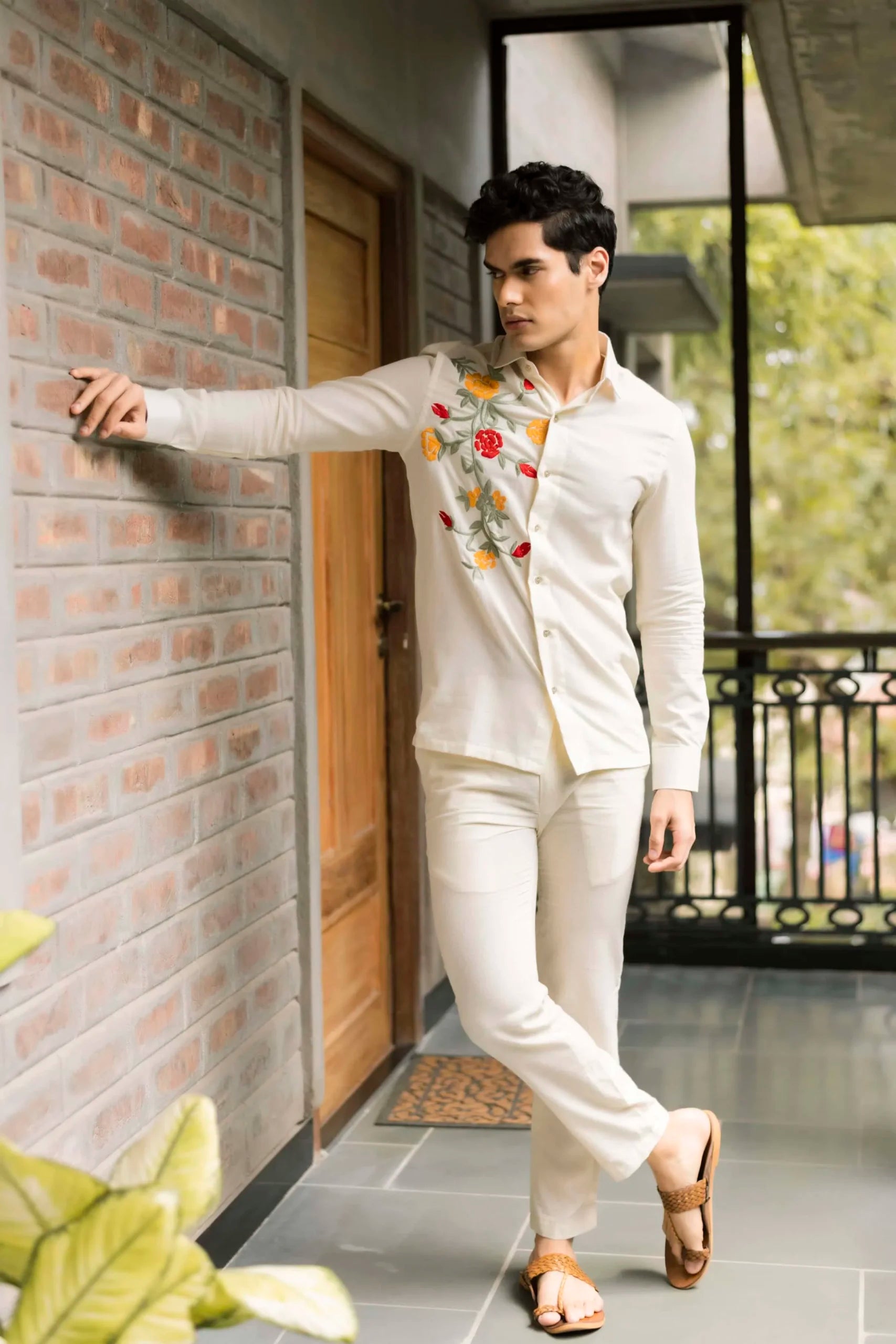 Product Description: Featuring an ivory shirt in handwoven cotton base with thread embroidery.