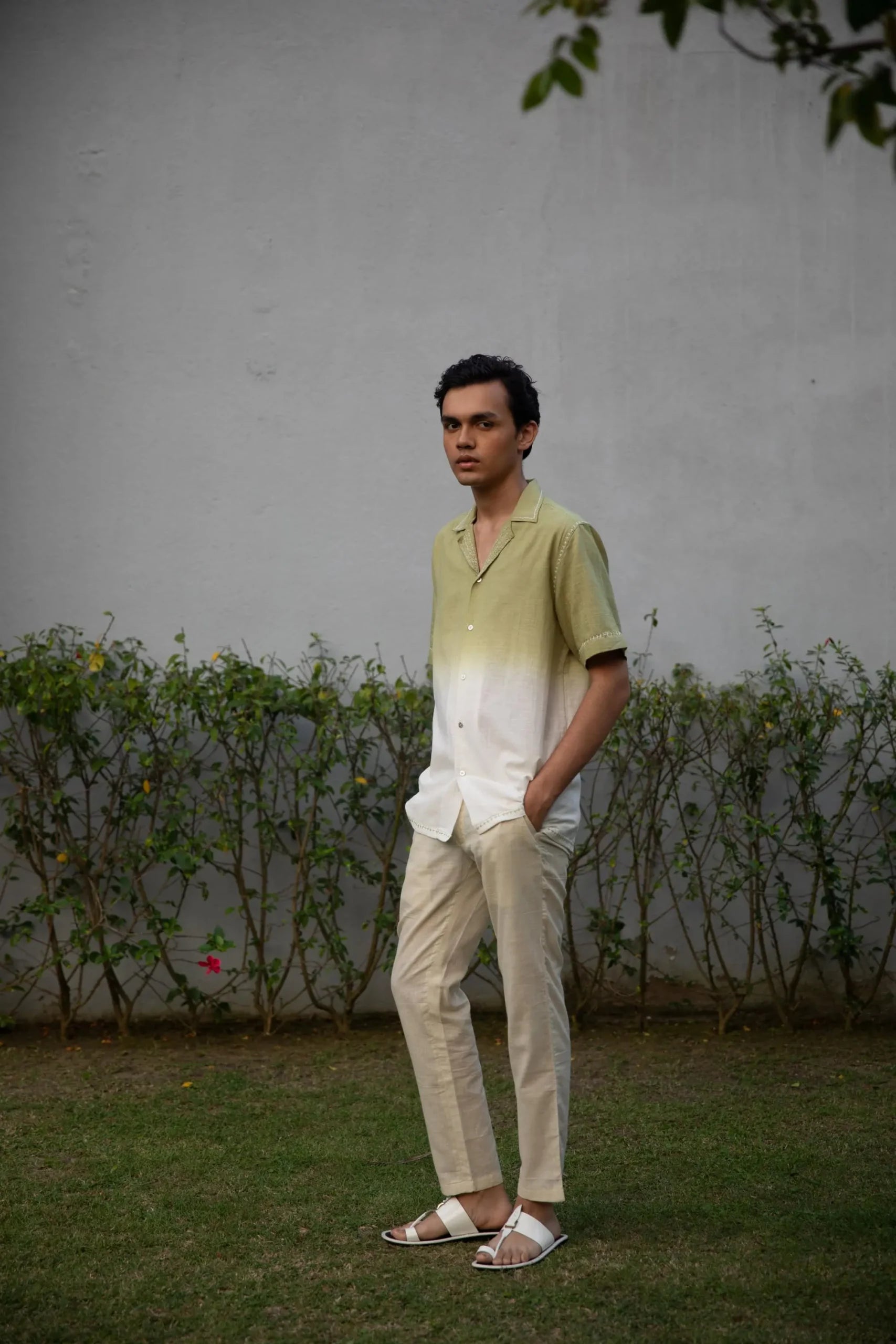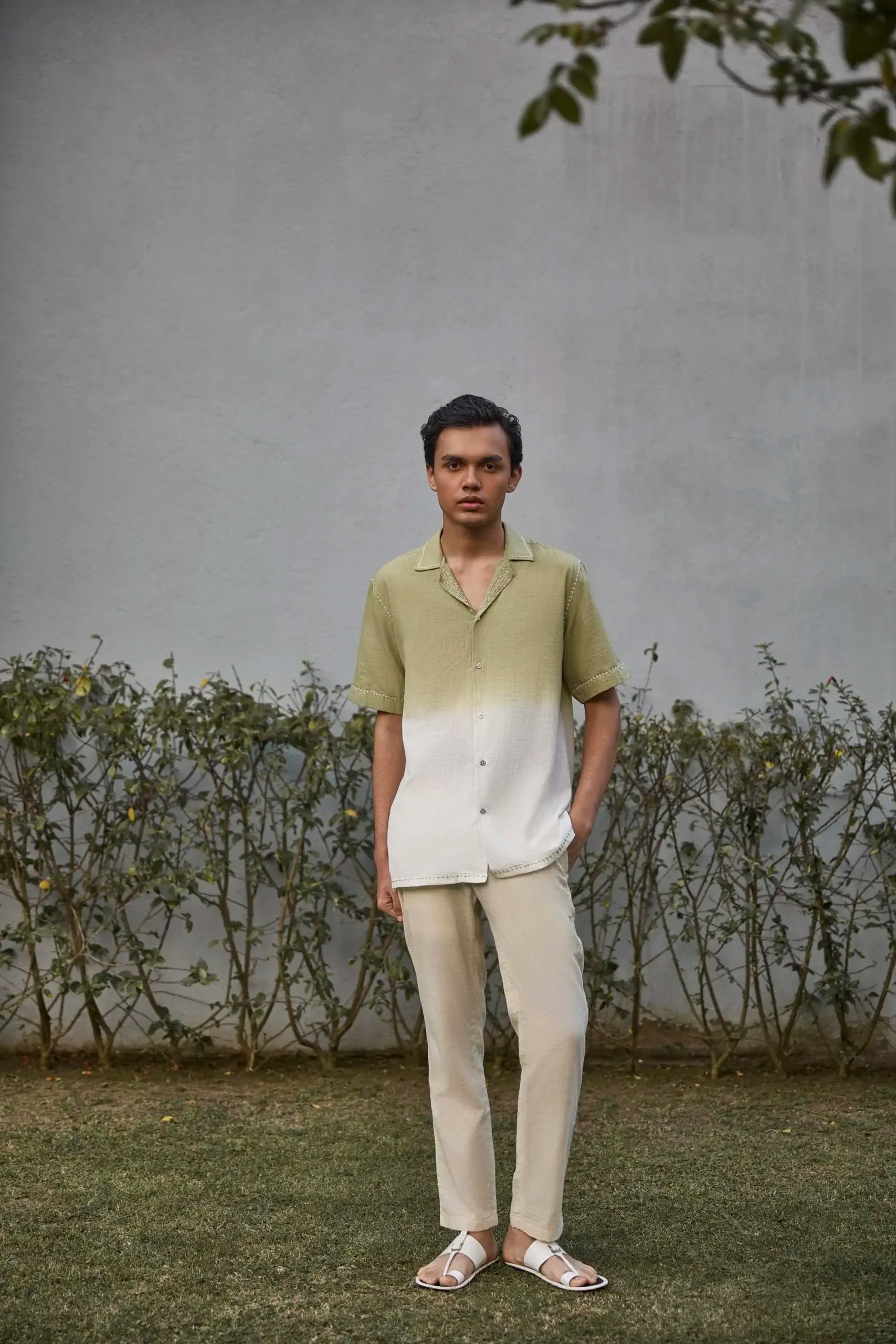 Product Description: Featuring an ivory dip dyed shirt in handwoven cotton silk base with a camp collar and hand embroidery. Ideal for casual wear and occasions that embrace a carefree spirit.